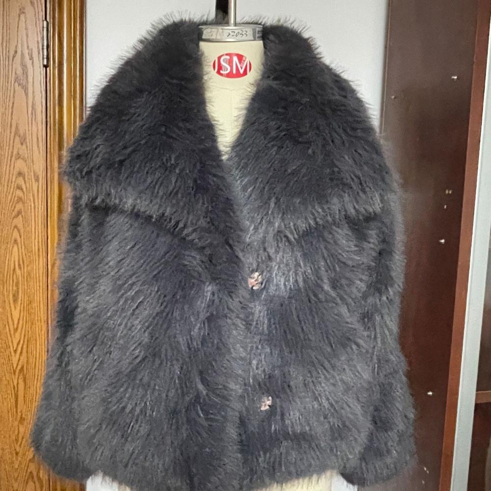 13 цветов Роскошная Зимняя Теплая Куртка С Открытой Вязкой Свободного Кроя Плюшевая Женская С Отложным Воротником Кардиган из Искусственного Лисьего Меха Женское Толстое Короткое Пальто “S”、“M”、“L”、“XL”、“2XL” темно серый