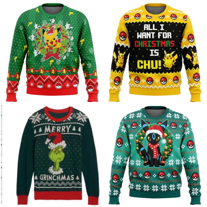 Свитер унисекс с круглым вырезом, утепленный Рождественский карнавальный свитер с аниме покемоном Пикачу, удобный подарок