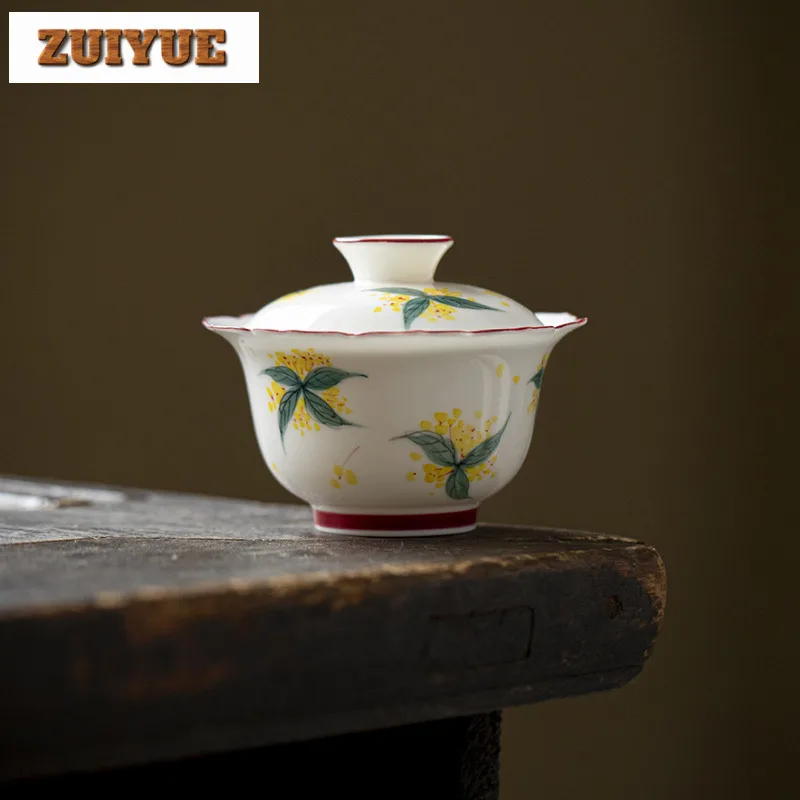 130 мл ручная роспись Османтус Гаявань чайная варенья ручной работы чайная миска с крышкой комплект чая крышка чаша чайные услуги коллекция подарок