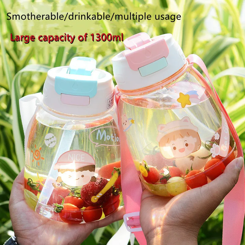 1300 мл пластиковая двойная чашка для питья детская портативная бутылка для воды с ремешком Мужская и женская Соломенная чашка для воды Спорт...