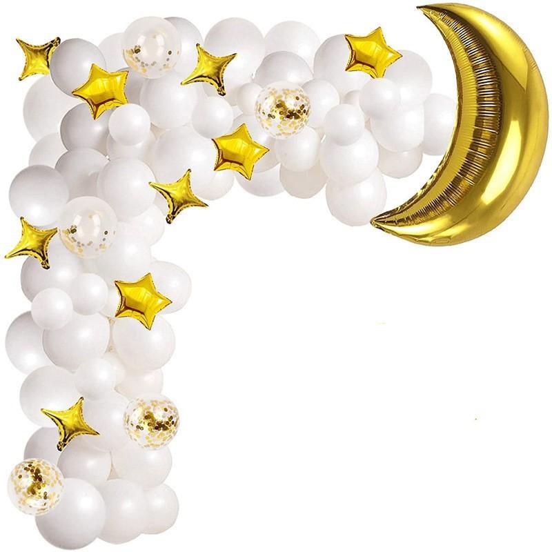 134 шт., набор воздушных шаров с аркой из белого золота и гирлянды, Луна, пятиконечная звезда, алюминиевый пленочный шар, воздушный шар на день рождения, свадьбу, праздник