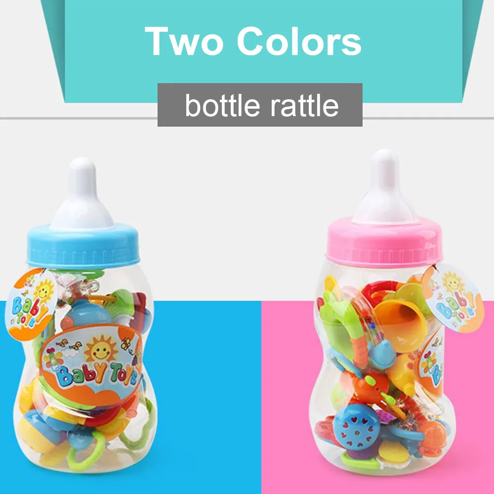 Baby Cartoon Rattle Toys Infant Teething Hand Shake Bell Toys with Big Milk Bottle Baby Kids Hand Development Teethers Toy Set