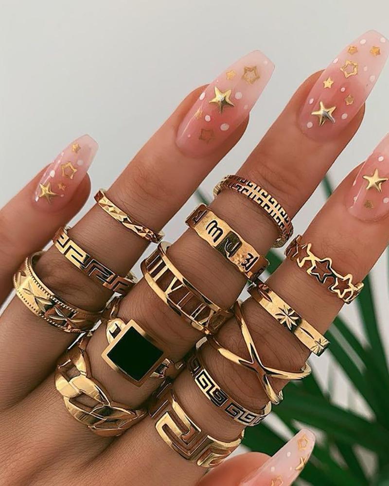 13pcs Star Geo Pattern Punk Rings Set, Gold