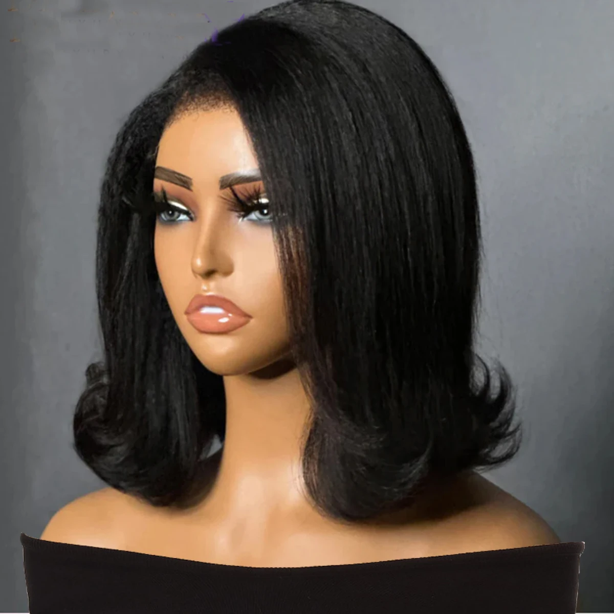 13x4 Парик Фронта Шнурка Яки Волна Мягкая Короткая Кудрявая Прямая Волна С Волосами Младенца Синтетический Предварительно Сорванный Бесклеевой Парик Для Повседневного Ношения