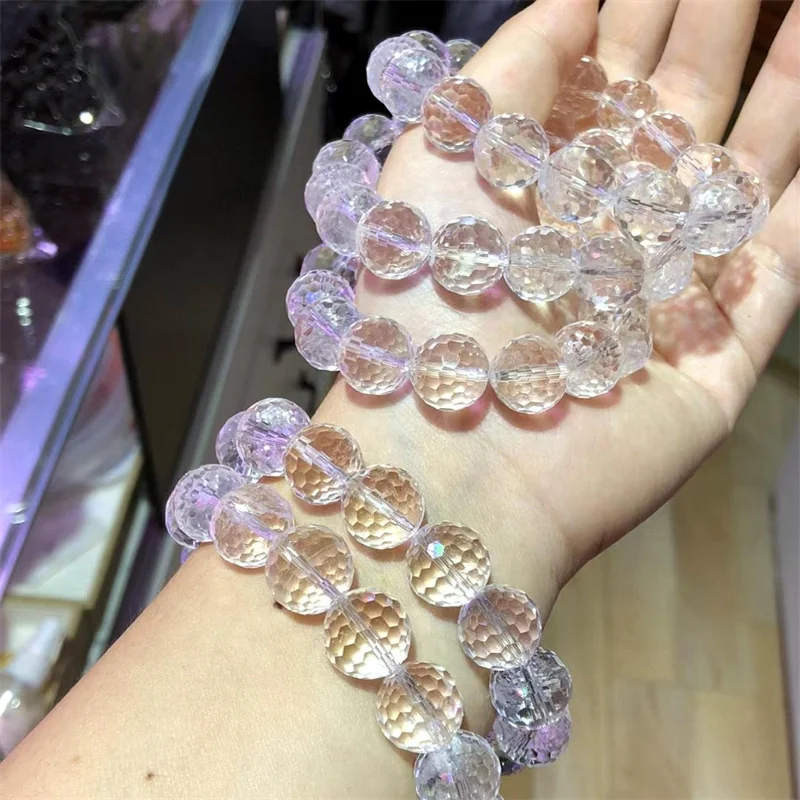 14 мм натуральный граненый прозрачный кварцевый браслет, Женский исцеляющий драгоценный камень, Кристальные браслеты из ниток ювелирный подарок для возлюбленных 1 шт.