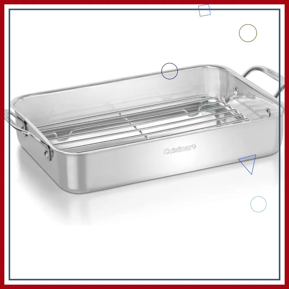 14-Inch Lasagna Pan with Stainless Roasting Rack, Chef's Classic Cookware Collection, Durable Stainless Steel