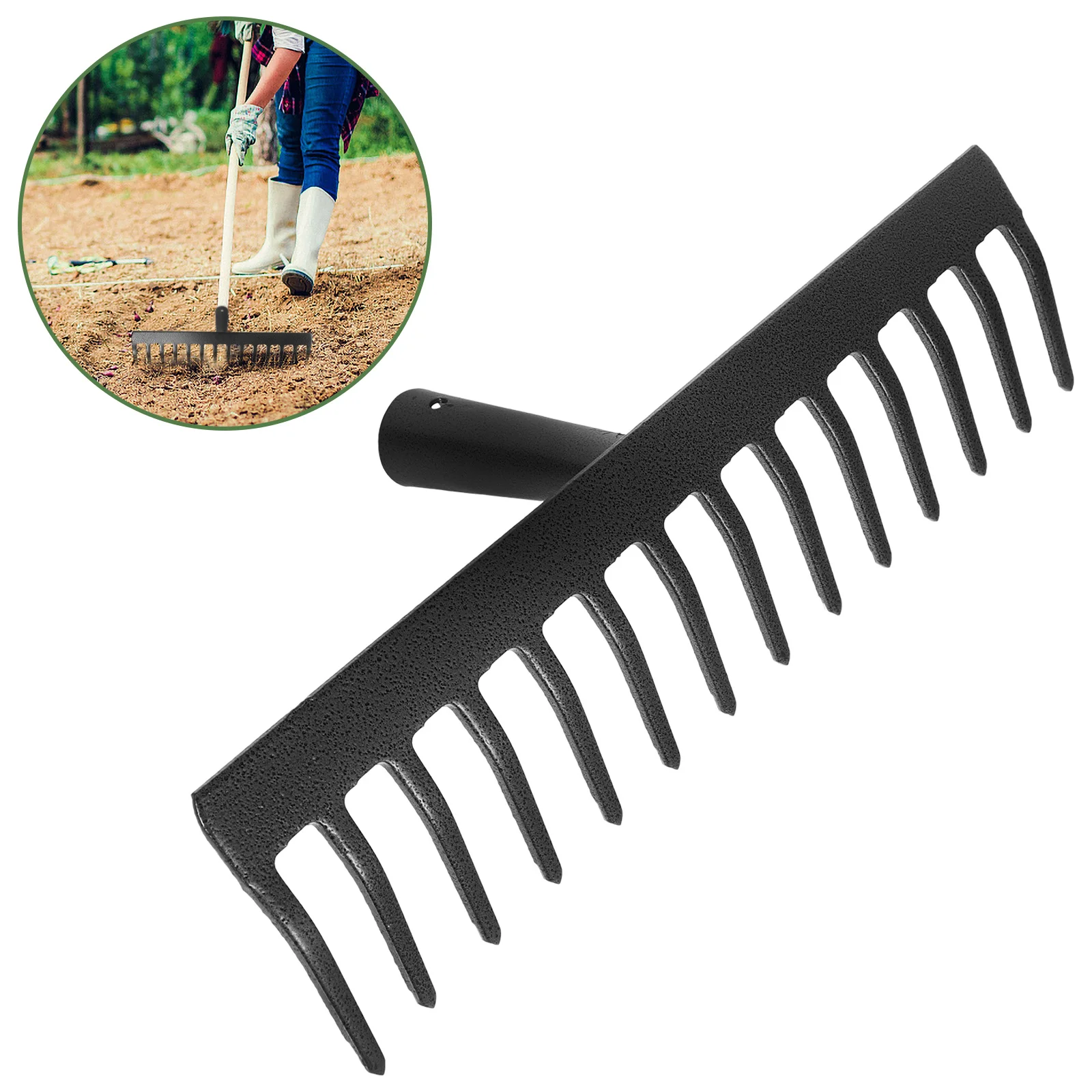 14-Teeth Metal Garden Rake Head Cleaning Tool Weather Resistant DIY Raking Accessories for Yard Lawn Garden Use