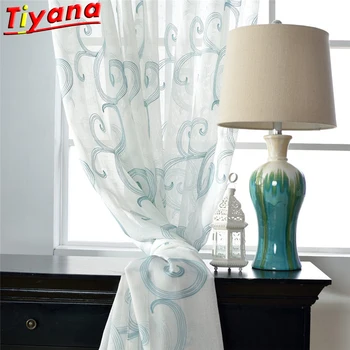 Chinese Classical Clouds Embroidery Curtains for Living Room Modern Geometric Ripple for Kitchen Balcony X-HM321#30