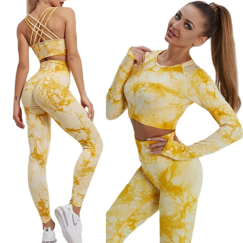 Seamless Set Women Fitness Clothing Top Female Leggings Padded Push Up Strappy Bra Sexy Female Suits