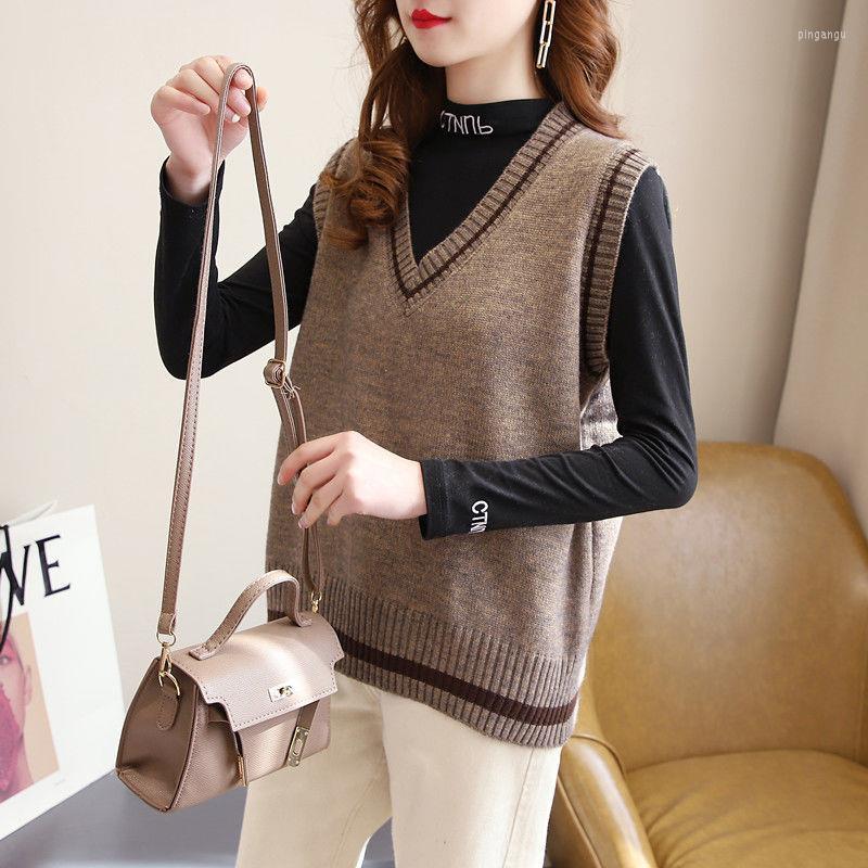 Women's Sweaters Women V-neck Knitted Vest Spring And Autumn Fashion Korean Style Loose Sleeveless Sweater Casual All-match, Gray