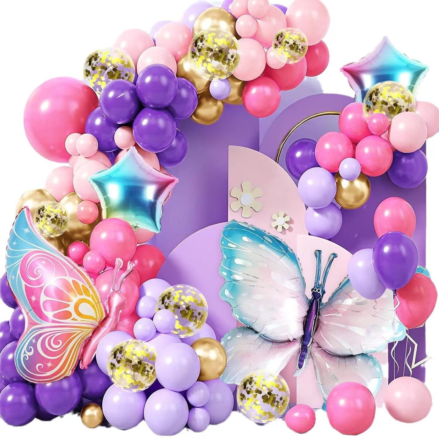 146 Набор цепочки из воздушных шаров «Бабочка Пентаграмма» Розовый Фиолетовый Розовый Набор арки из воздушных шаров на день рождения для девочки Set as shown