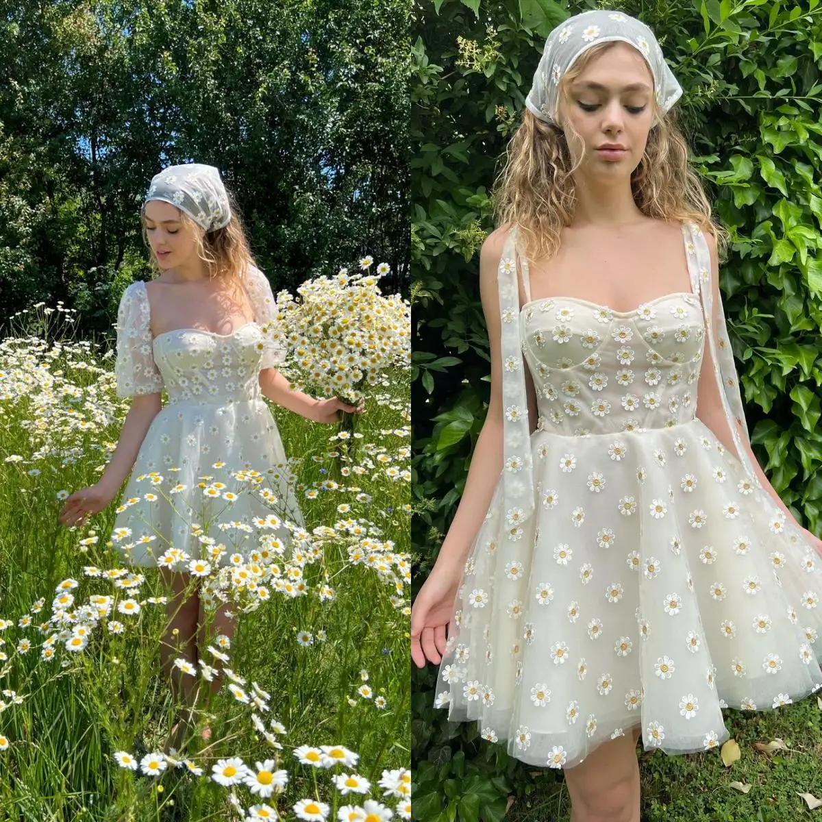 14899 # тюлевые Выпускные платья с маргариткой в клетку, платье-трапеция до середины икры с рукавом до локтя, платье для свадебной вечеринки, вечерние платья миди с открытой спиной