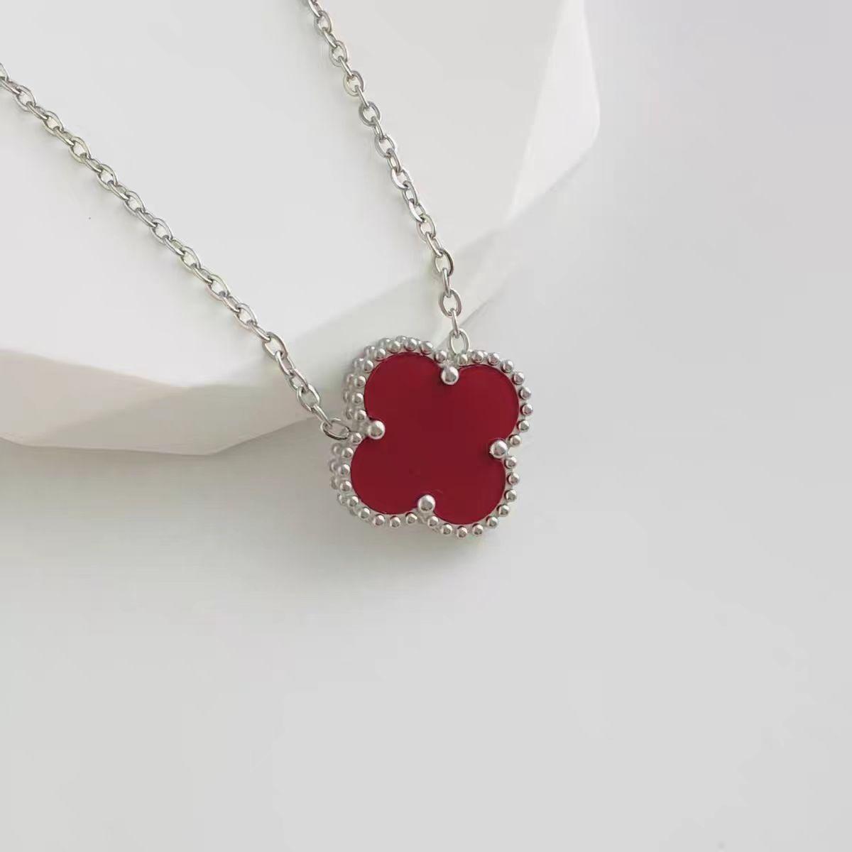 15 мм модное двухстороннее ожерелье с четырьмя листами клевера, легкая роскошная ювелирная бижутерия из титановой стали, простая темпераментная женская цепочка на ключицу 18K красный