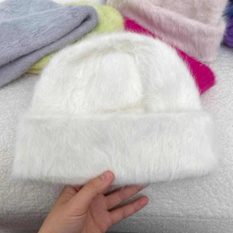 15 цветов, мягкие шапки из меха кролика, зимняя шапка для женщин, роскошная пушистая вязаная шапка-чепчик для женщин, осенне-зимняя теплая шапка-чепчик 54-58cm