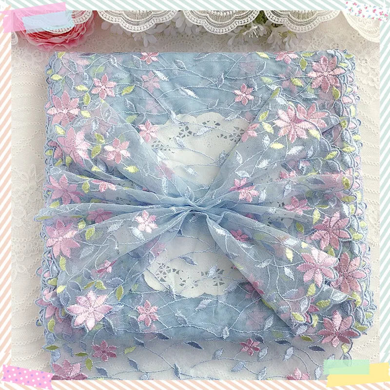 15 ярдов, кружевная вышитая Цветочная отделка, тюль, нижнее белье, одежда, бюстгальтер, домашний текстиль, шитье, розовая, синяя, двусторонняя ...