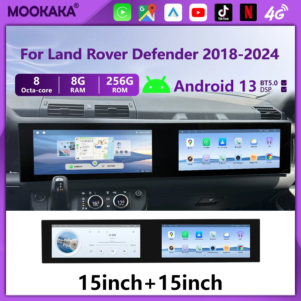 15+15 Inch Dual Screen For Land Rover Defender 2018-2024 Car Multimedia Player Android Auto Carplay GPS Navigation TV Head Unit