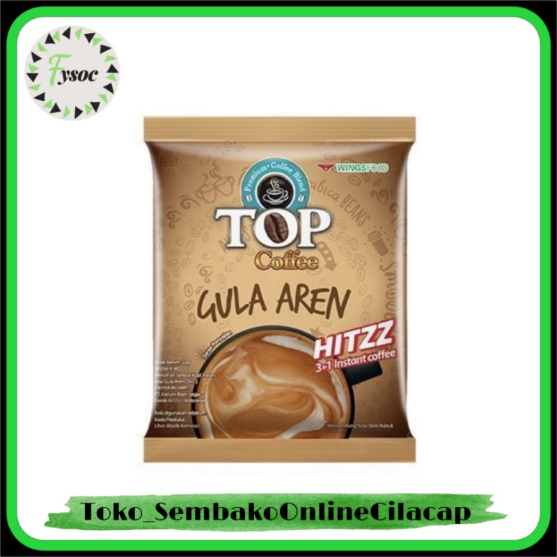 Top Coffee Gula Aren Hitzz ini merupakan kopi 3in1 instant coffee yang praktis untuk diseduh, tanpa diberikan tambahan gula, krimer atau lainnya. Top Coffee ini memiliki kandungan berupa gulam krimer, kopi, pemanis buatan dan garam. Sehingga kamu tidak perlu lagi menambahkan gula saat membuat kopi ini.