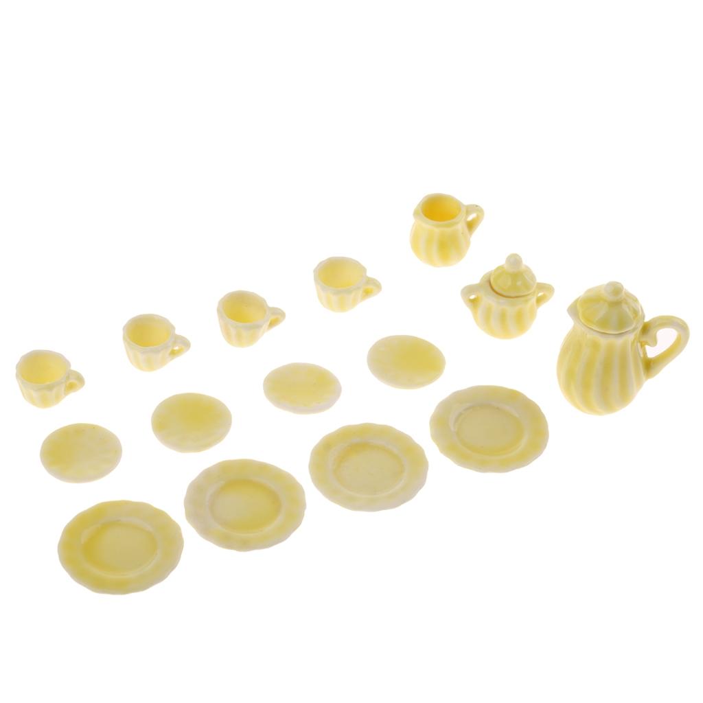 15 Peices Кукольный домик Миниатюрная столовая посуда Фарфоровый чайный набор Имбирь