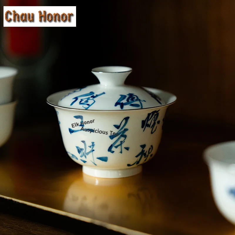 150 мл рукописная поэтическая калька серебряная керамика гавань японская чайная варенья чайная чаша с крышкой комплект крышка для заваривания чая чаша чайная посуда