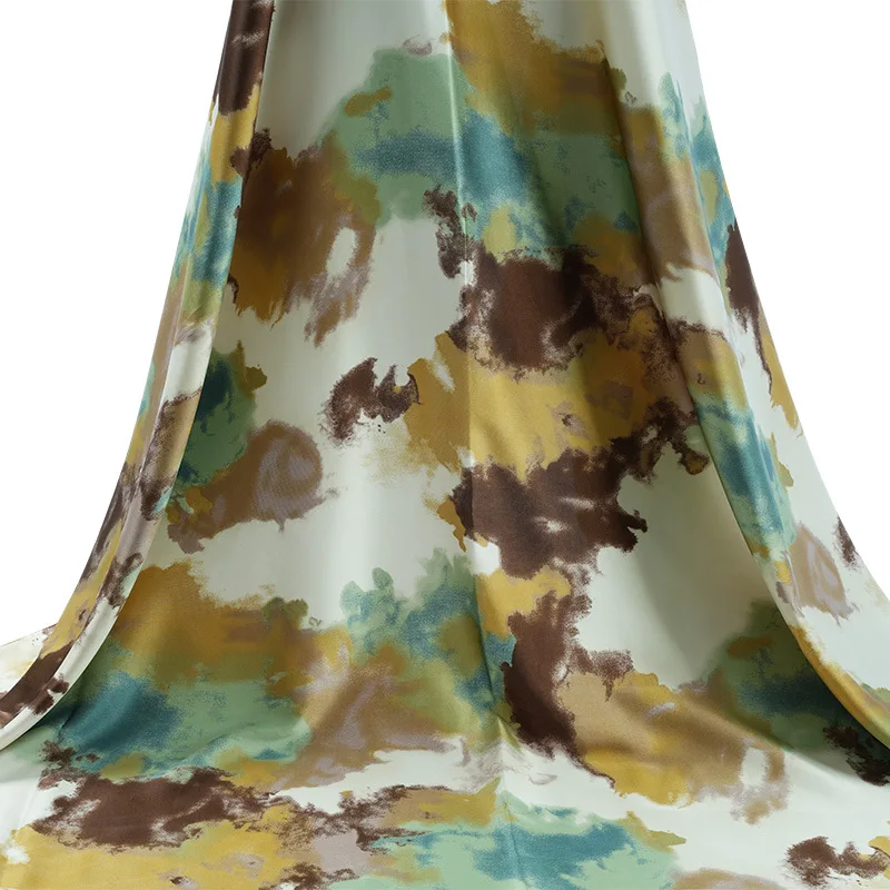150 см в ширину, 95 г/м, цветная блочная печатная полиэфирная ткань для летних платьев, рубашек и брюк, стрейч из спандекса, модель R695