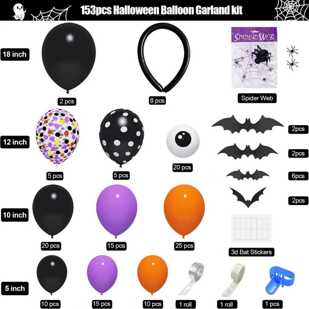 153 шт. набор из воздушных шаров для Хэллоуина, венок, арка, летучая мышь, паук, глазные шары, домашний декор для вечеринки на Хэллоуин, праздничные украшения, принадлежности