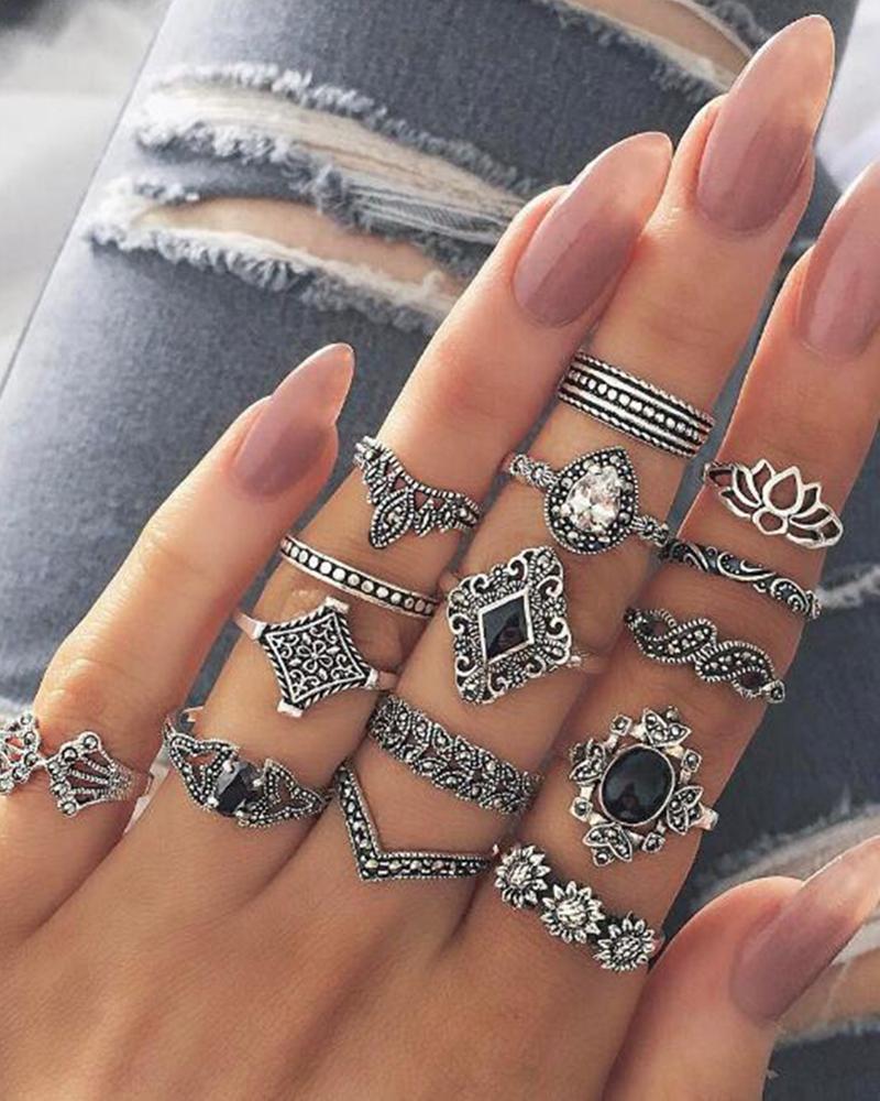 15pcs Stackable Geometric Fashionable Rings Set, Silver