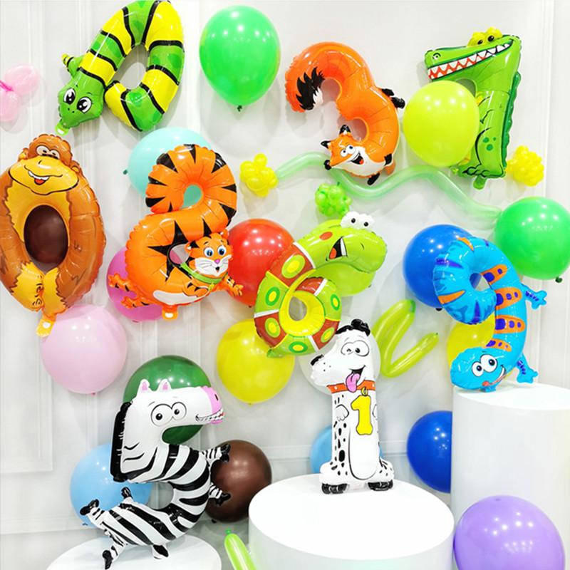 16-дюймовый шар в форме животного с номером из алюминиевой фольги, воздушный шар на свадьбу, детский день рождения, юбилей, вечеринку, украшение