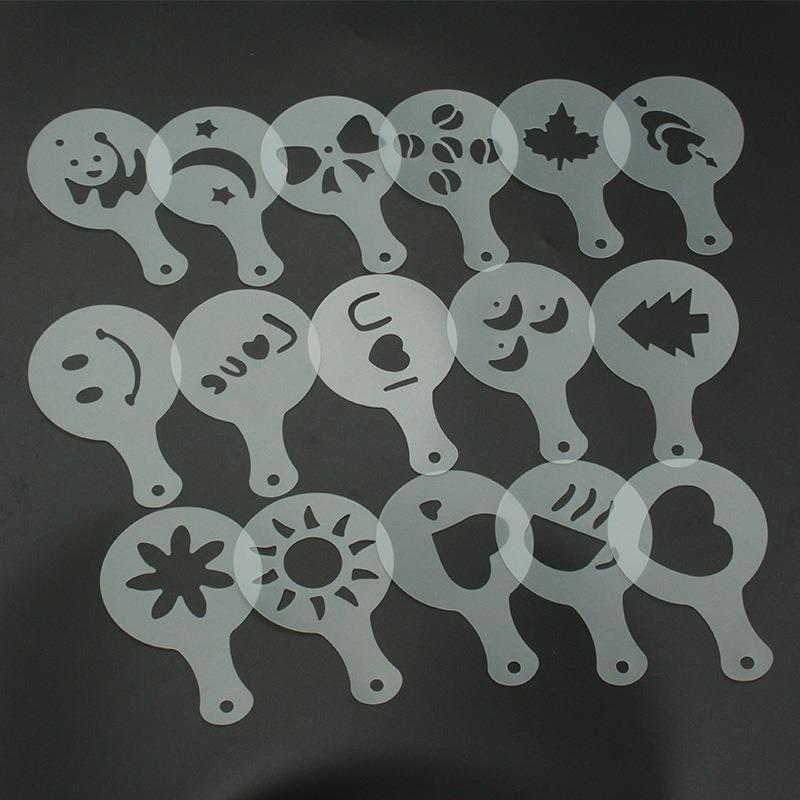 16 штук пластиковых форм для латте-арта, модель для печати на кофе, утолщенный шаблон для распыления узоров на кофейной молочной пене