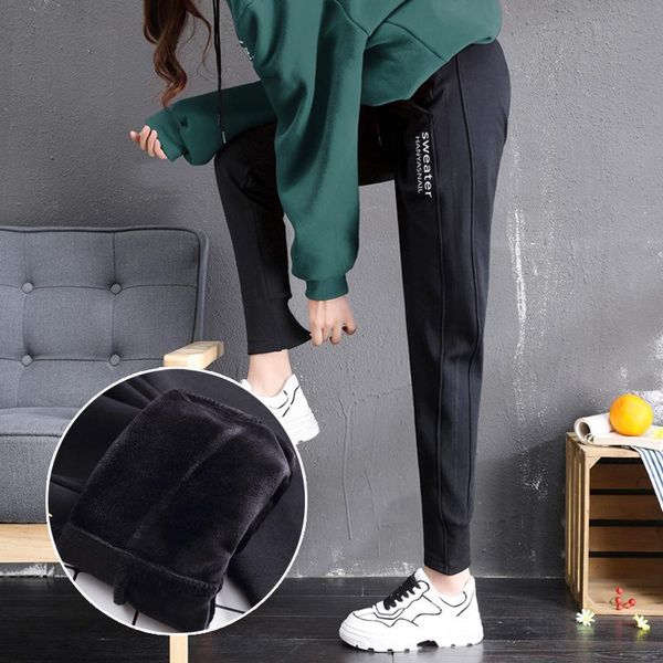 women's pants & capris fashion printing plus velvet sports 2021 autumn and winter korean style all-matching loose tappered sweatpants, Black;white