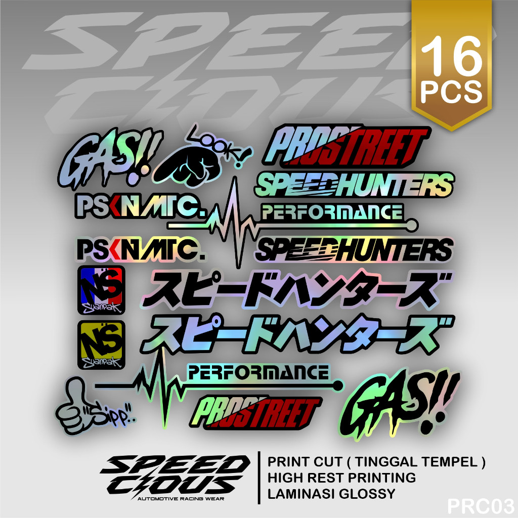16 PCS STIKER PACK RACING VINYL HOLOGRAM PELANGI PRINT CUT