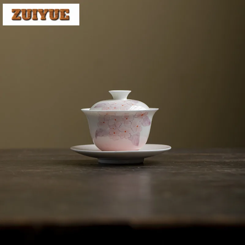 165 мл ручная роспись вишневого цвета Гайвань элегантная чайная варенья чайная чаша с крышкой комплект чайник крышка чаша украшение для чайной церемонии