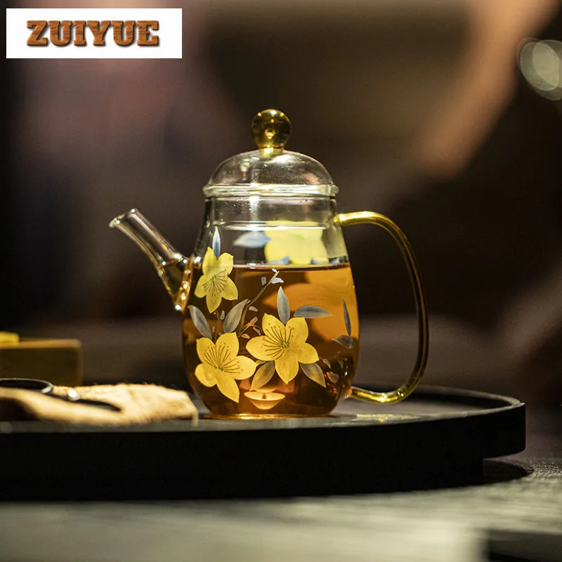 170 мл ручная роспись лилии стеклянный чайник винтажный чайник для заварки чая бытовой чайник чайник с фильтром для чайных принадлежностей украшения
