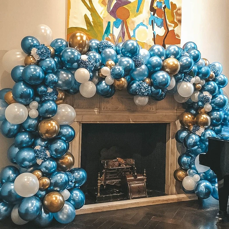 170 шт. хромированные синие золотые шары, гирлянда, Арка жемчужно-белый синий шар для свадьбы, дня рождения, детского шоу, юбилея, вечеринки, де...