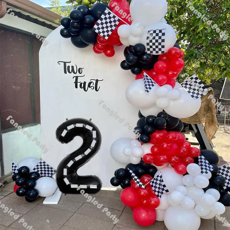 176 матовая белая, красная, черная гоночная машина, украшение на день рождения, трек-флаг, два быстрого украшения вечерние ринки, детский праздник, пола, раскрываемая цепочка для воздушных шаров