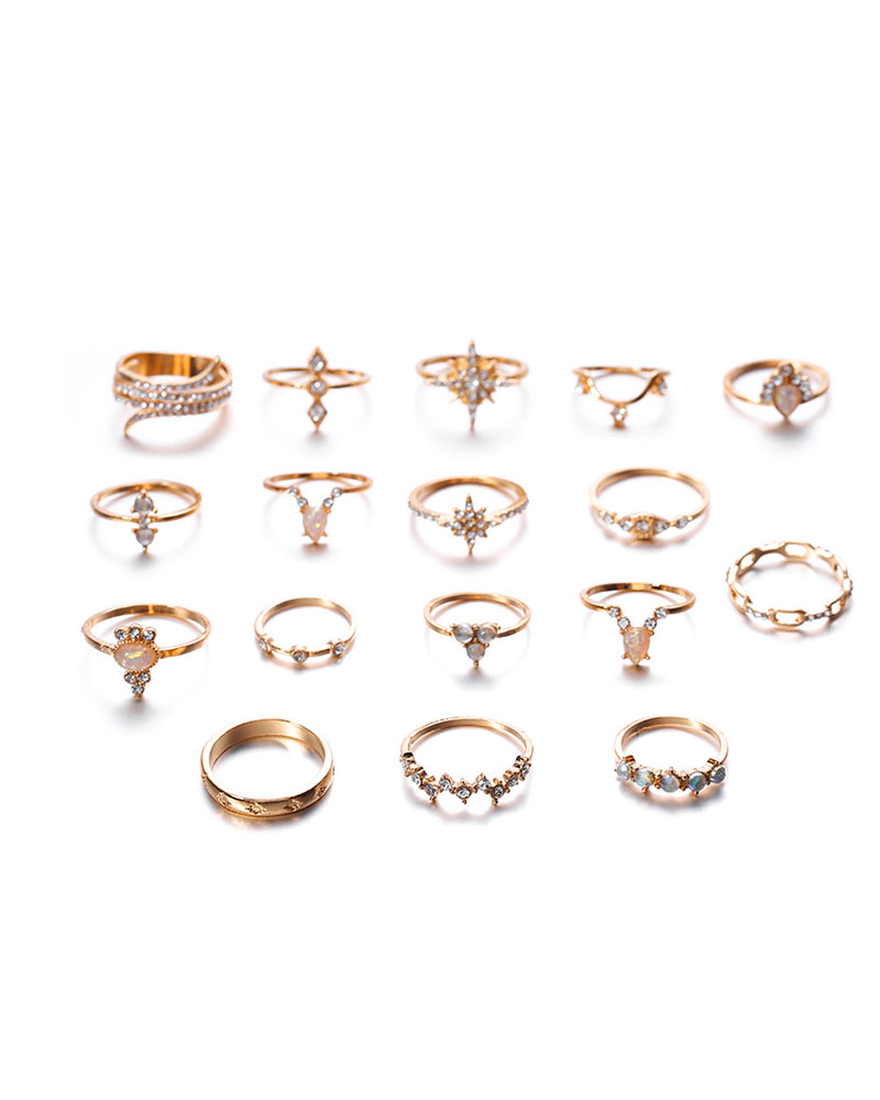 17PCS/Set Rhinestone Beaded Decor Geo Pattern Boho Ring, Gold