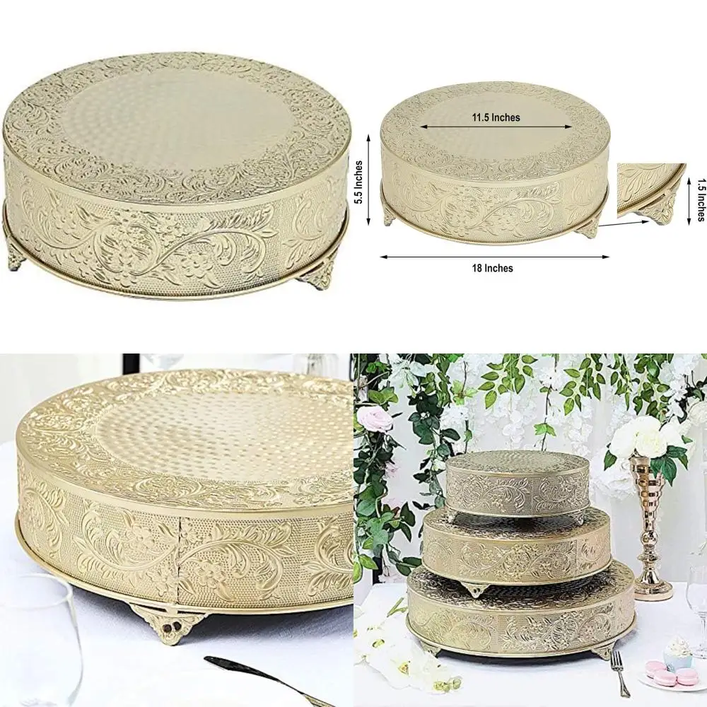 18-дюймовая золотая круглая подставка для торта с тиснением для свадьбы, дней рождения и вечеринок — центральная часть пьедесталя для десерта