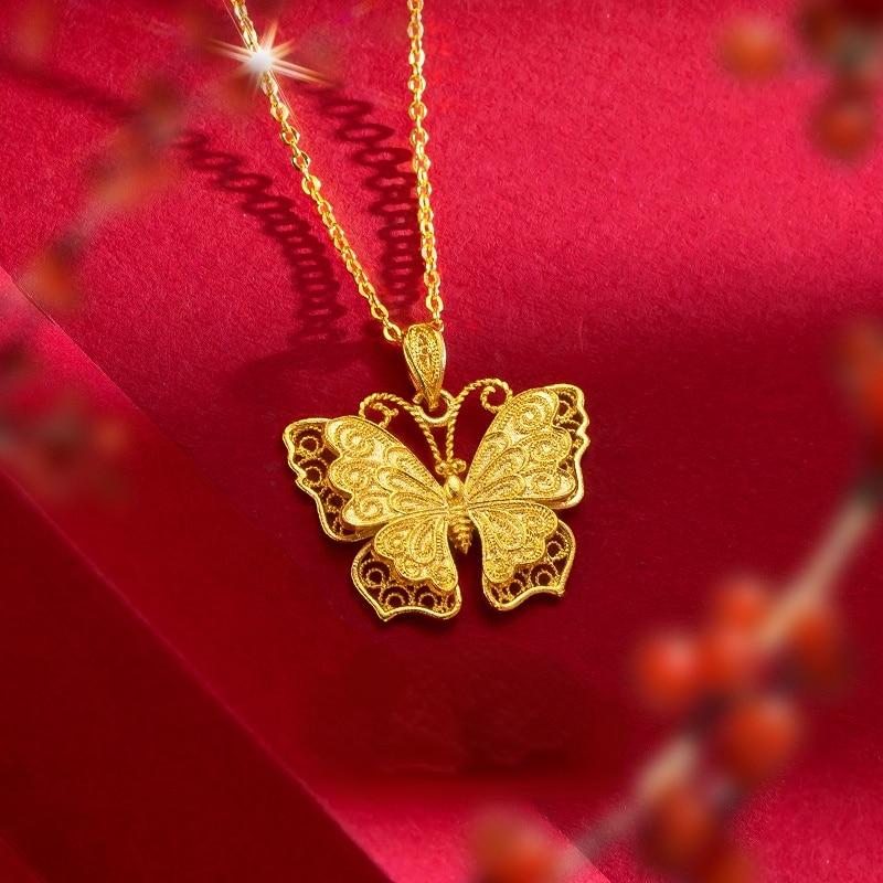 18-каратное золото, полое ожерелье с бабочкой, цепочка Lavicle для женщин, невеста, цепи из чистого 999, ювелирные изделия, подарки