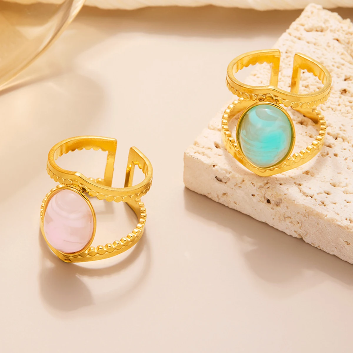 18-каратное позолоченное кольцо из натурального камня для женщин, модные роскошные регулируемые кольца из нержавеющей стали с овальным опалом, ювелирные изделия на палец, подарки