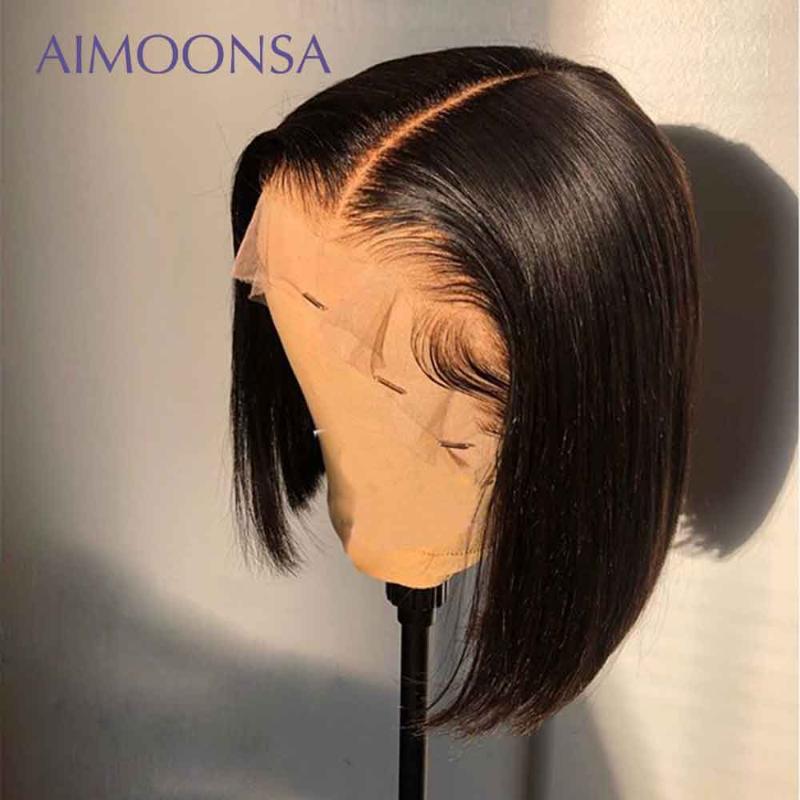 Transparent Lace Wigs Preplucked Short Bob Human Hair Wigs Straight Undetectable Lace Wig 250 Density 13x6 Frontal Wig Remy, As pic