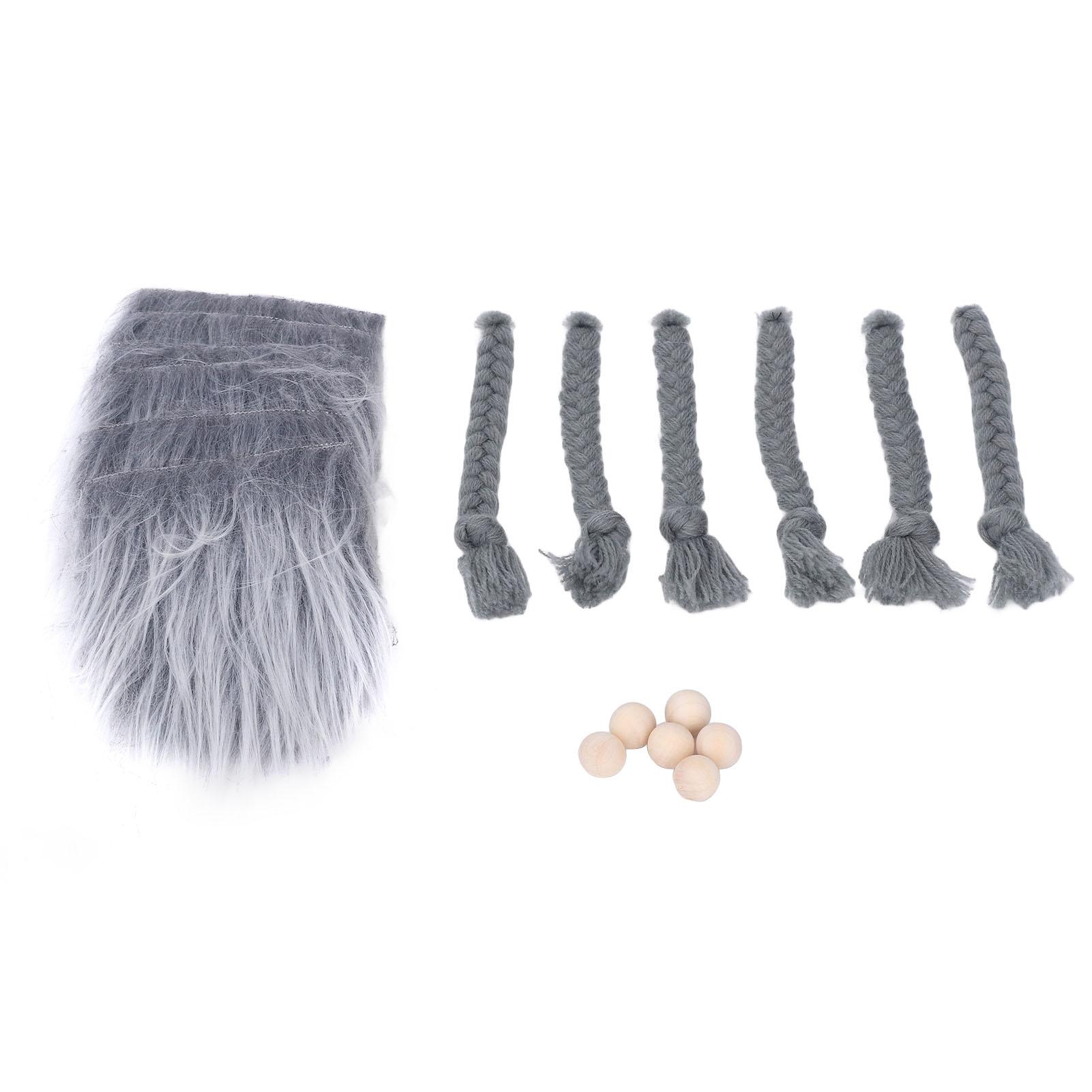 18 шт. предварительно нарезанная борода гнома, пушистая серая, костюмная плетеная борода с деревянными шариками для поделок, украшений