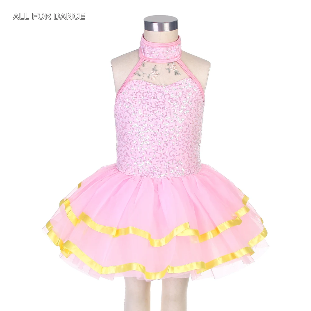 18289 розовый лиф с блестками, детская балетная пачка для девочек, балетные костюмы для выступлений на сцене, танцевальная пачка с лямкой на шее, балетная одежда, танцевальная пачка