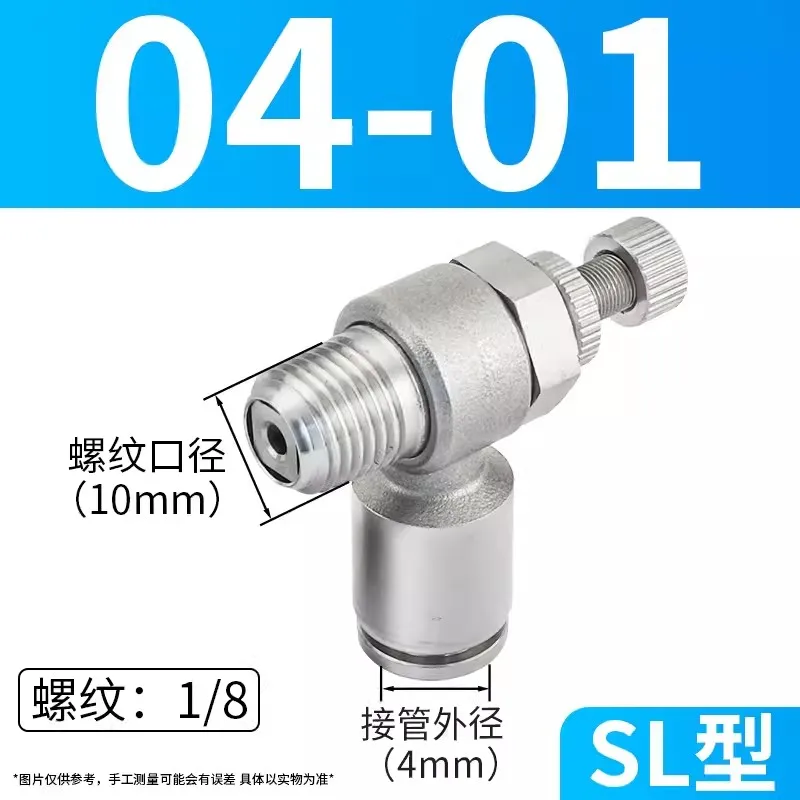 Пневматический дроссельный клапан SL Воздушный клапан Нержавеющая сталь 304 Резьба 1/8 1/4 1/2 Контроллер потока Регулировка скорости 6 8 10 мм Фитинг для шланга
