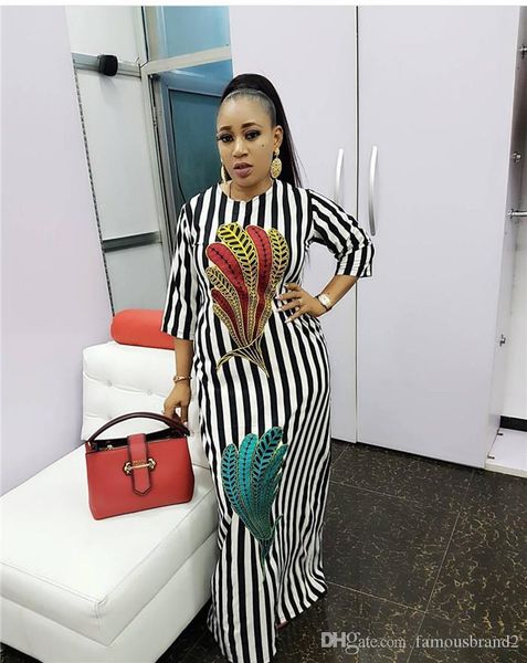 19ss женская одежда роскошные платья черный белый полосатый цвет пера печати дряблая большой размер платья одежда, Black;gray