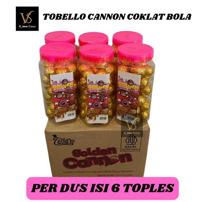 (1DUS ISI 6 TOPLES) TOBELLO GOLDEN CANNON/TOBELLO CANNON COKLAT BALLS RASA STROBERI 1 TOPLES ISI 40PCS