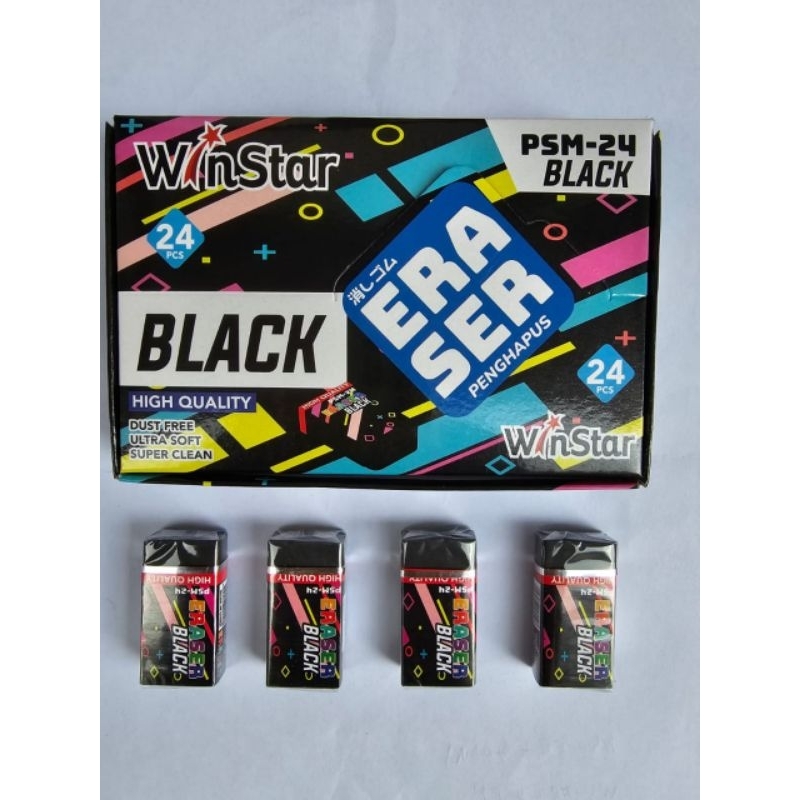 1PACK (24 PCS) PENGHAPUS WINSTAR PSM-24 BLACK ERASER