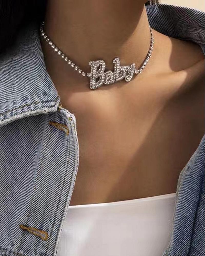 1PCS Allover Rhinestone Letter Pattern Choker Necklace, Silver