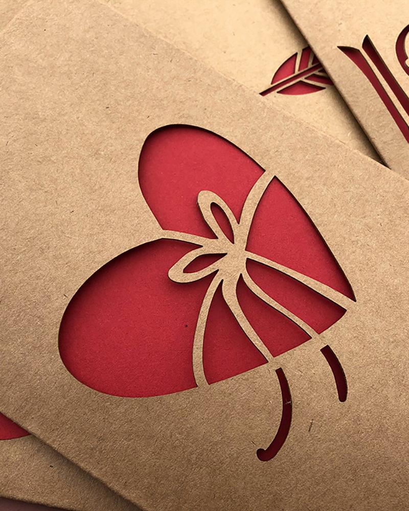 1PCS Heart / Letter / Floral Pattern Cutout Greeting Card, Style1