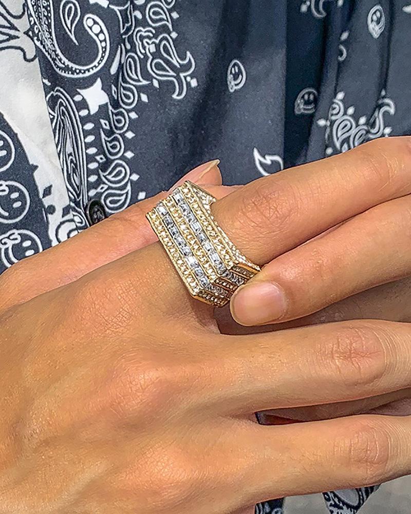1PCS Hip-pop Square Shaped Rhinestone Decor Ring, Gold