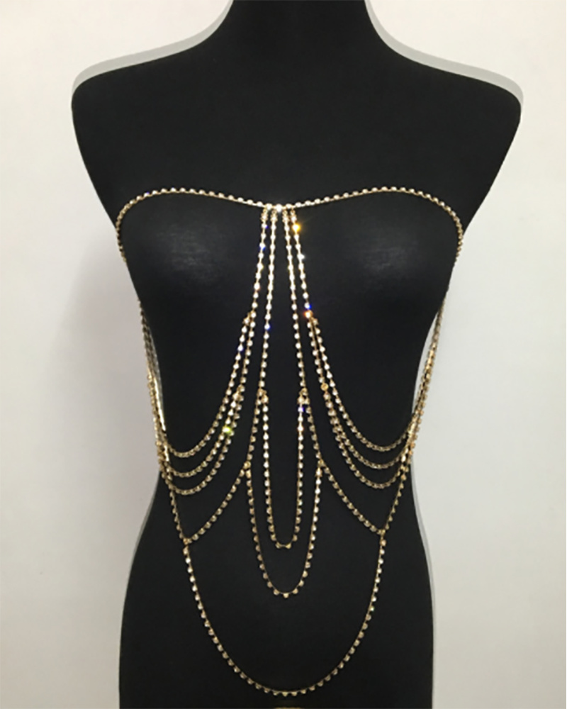 1PCS Layered Rhinestone Decor Body Chain, Gold