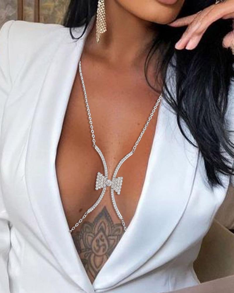 1PCS Rhinestone Bowknot Decor Body Chain, Silver